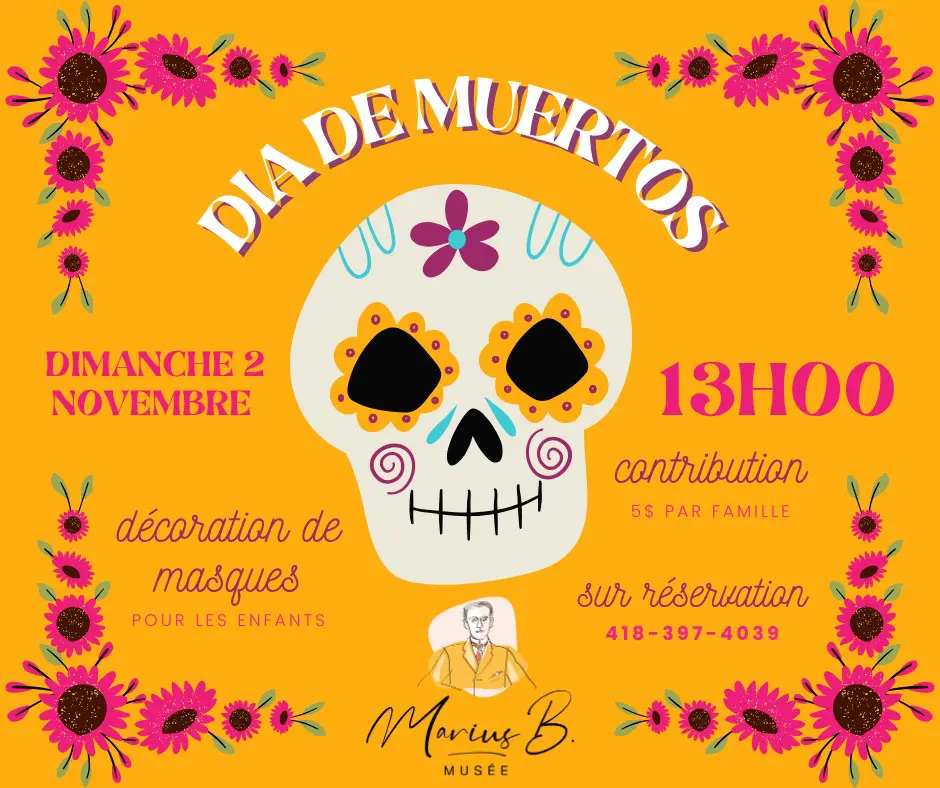 Le dimanche 2 novembre à 13h00, venez célébrer la tradition mexicaine du Día de Muertos avec nous! Au programme : décoration de masques colorés et festifs inspirés de cette belle fête, spécialement pour les enfants de 19 ans et moins. 👉 Contribution : 5 $ par famille 👉 Activité sur réservation au 418-397-4039